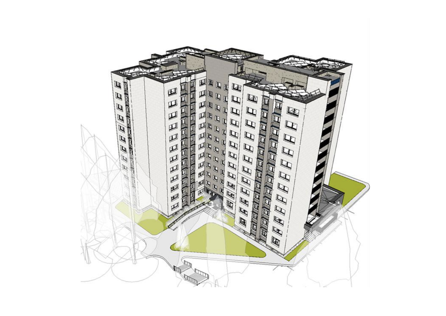 Projektas apima 12 aukštų bendrabučio pastato, kurio plotas siekia beveik 9 000 m², kapitalinį remontą ir modernizavimą. Numatyti sprendiniai orientuoti į pastato techninės būklės gerinimą, energinio efektyvumo didinimą bei patogesnių ir funkcionalesnių erdvių sukūrimą.